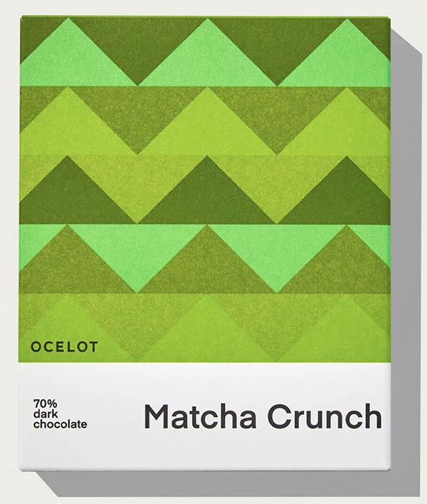 Deras fylliga, mörka Virunga-choklad (70%) har infuserats med ekologiskt Matcha Iri Genmaicha, den högaktade japanska teblandningen med sencha, matcha och rostade bruna riskorn. De fräscha, söta, smöriga noterna från Matcha Iri Genmaicha, som förstärks av den subtila umamismaken, gifter sig, tillsammans med det härliga krispet, perfekt med de jordiga, fruktiga tonerna från chokladet, som odlas på ett kooperativ i östra Kongo. Upplev en lockande bitterhet, aromatisk sötma och ett beroendeframkallande krisp! Ocelot grundades 2013 av Matt & Ish i deras Edinburg-kök. Inspirationen kom av deras intresse för bra mat, vilket tog dem runt Europa och jobb i olika kök. Detta kulminerade i att de skapade sitt chokladmärke, med vilket de vill uttrycka både sin kärlek till mat och snygg design (Ish gör alla omslag & illustrationer). Mer än ett decennium senare görs deras choklad av ett litet team i en mikrofabrik i Dundee i Skottland. När det kommer till kvalitet, etik och smak, görs det inga kompromisser: de vill göra så litet avtryck som möjligt på klimatet, all choklad är ekologisk med oraffinerat socker och innehåller aldrig konserveringsämnen eller emulgeringsmedel. All paketering är plastfri och trycks på hållbart papper, innerplasten är återvinningsbar.