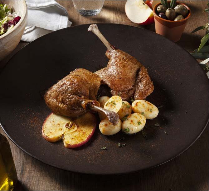 Konfiterade anklår som långsamt har tillagats i olivolja. Här vi det absolut möraste och ljuvligaste köttet från icke tvångsmatade ankor.