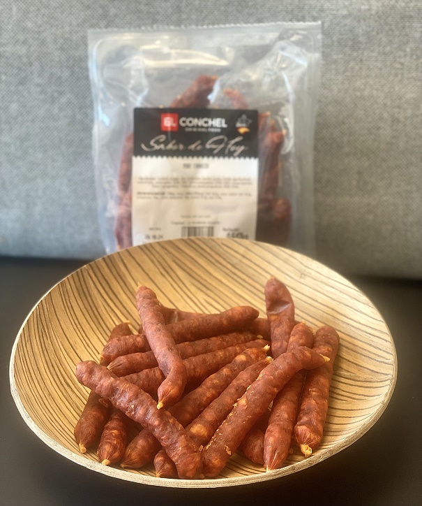 Dessa lite mindre chorizo är av bästa kvalitet, 50% av köttet kommer från Duroc-grisarna. Korvarna torkas omsorgsfullt och länge och de är smaksatta med en spansk kryddmix som ger en härligt mustig smak! Dessa ligger i en 500 gramsförpackning som säljs på lösvikt. Perfekta som snacks till en kall öl! De är fria från gluten, färgämnen, laktos och soja.