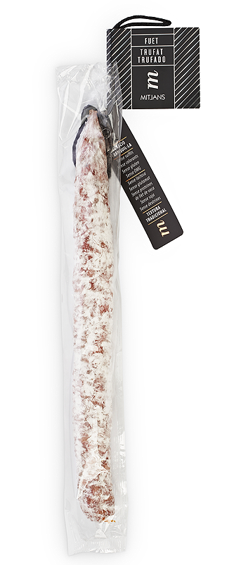 Supergod, klassisk Fuet från Casa Forner som smaksatts med tryffel! Denna lilla lyx-salami passar alldeles utmärkt till ett glas svalt bubbel eller en härlig, iskall öl.