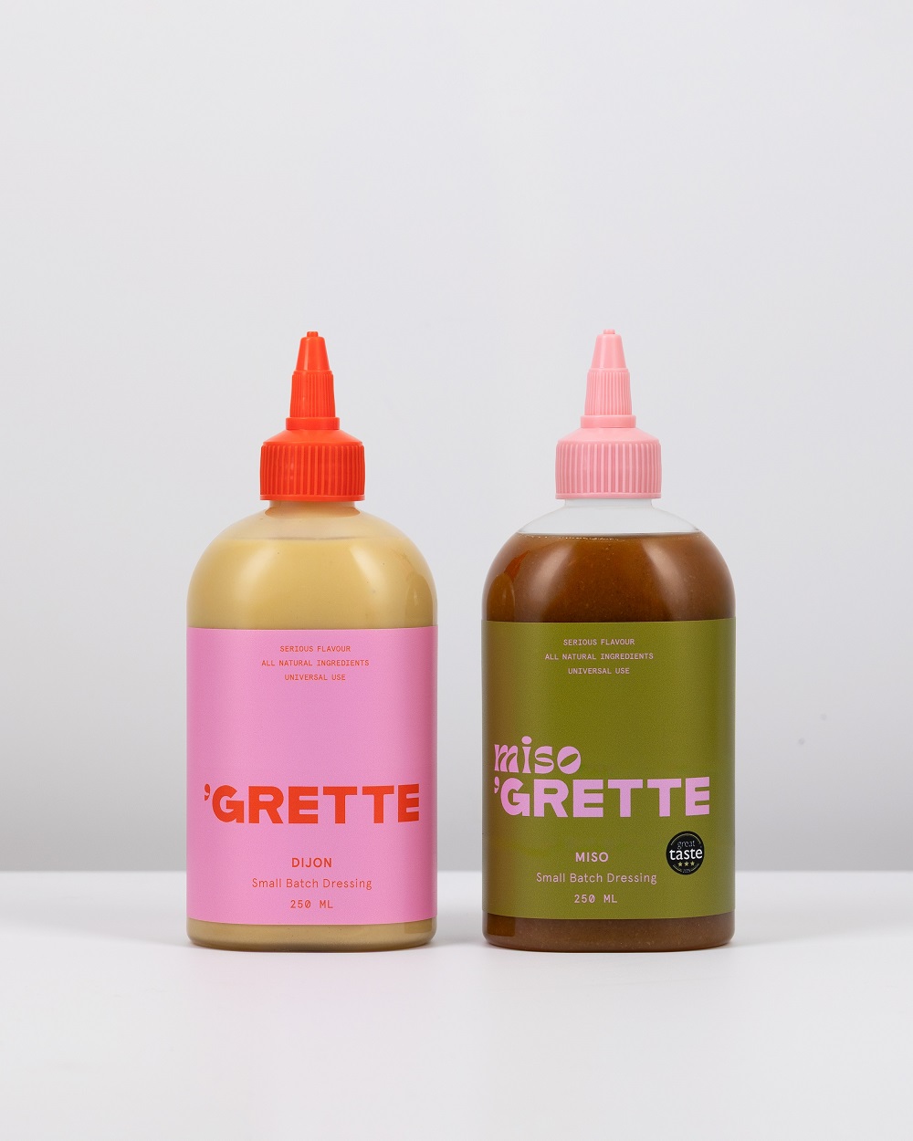 Ärliga smaker, enbart naturliga ingredienser. Allt för att höja dina grönsaker till nya nivåer. Gus och Juno i England gör små batcher av sina oemotståndligt goda dressingar för alla oss som vill ha allt. Äta bra? Ja. Njuta av livet? Också ja. Sallad ska vara något vi ser fram emot. ‘grettes dressingar är gjorda med naturliga ingredienser som är bra för dig. Men viktigast av allt, det handlar framförallt om smaken och att ha roligt. För livet är för kort för tråkiga sallader (eller för allt som är tråkigt, faktiskt). Detta är deras flaggskepp, en klassisk honung- & senapsdressing med olivolja. Smakfullt balanserad harmoni med både lite tryck i och en pigg syra, med en liten hint av sötma från honungen. Oavsett om du dressar din sallad eller ringlar den över rostade grönsaker, så är den idealisk när du vill addera smak och fräschör till dina rätter. Innehåller enbart naturliga ingredienser utan konserveringsmedel.