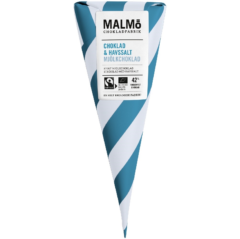 Underbart krämig mjölkchoklad med ett fint strössel av krispigt havssalt. En blandning av sött och salt som fastnar likt en sommarhit i vårt smaksinne. Chokladen är ekologisk och fairtrade, samt fri från nötter, soja och är glutenfri. På Malmö Chokladfabrik skapas choklad med äkta kärlek och sprudlande entusiasm. All choklad är 100% ekologisk, onödiga tillsatser lyser med sin frånvaro.